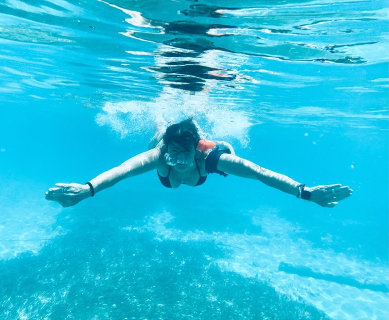 Wellness goes well beyond an artificially recreated cave and waterfall in an indoor spa followed by a massage. Wellness is about recharging the body and nourishing the mind, it is about listening to your needs rather than succumbing to the ‘must do’ when going away. Wellness is about doing what feels good to you. As the pandemic lingers into its third calendar year, it’s probably not surprising that travellers are increasingly looking to their holidays to work on their mental and physical wellness. In a recent American Express survey, 76 percent of respondents said they wanted to spend more on travel that improves their well-being. But why spend money and time in a crowded indoor studio when you can meditate or run by a nearby lake or beach? Why follow a spa itinerary with strangers when you can recreate a wellness moment anywhere. Nature is one big spa so get creative and recognise the opportunities you have within your radius. Think wild swimming in rivers and mountain lakes, soaking in natural hot water pools, jumping into fresh water cenotes, relaxing on meadows while taking in the smell of freshly cut hay, covering your body in wet sand for a real peel, or tree hugging on a mindful forest walk. Nature has got it all. On our recent cabin stay up in the South Tyrolian mountains we had a small wooden bathroom. It’s here were I had my best wellness moments with just a few candles, the smell of wood and some majestic views out onto the alpine peaks.